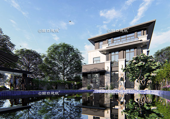 占地面積 300.0㎡ 土建造價 95.0萬 雙拼三層新亞洲風格別墅